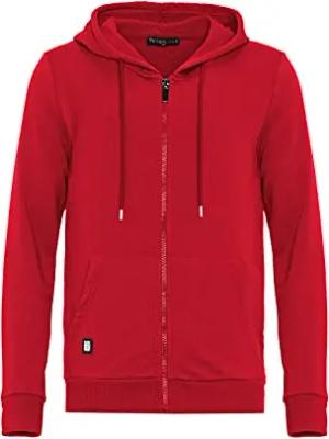 Herren Sweatjacke Kapuzenpullover Zip Hoodie mit Reißverschluss Premium Basic Rot XXL