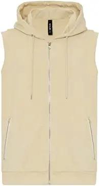 Herren Tank-Top T-Shirt mit Reißverschluss Hoodie Ärmellos S Beige