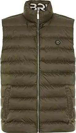 Herren Weste mit Stehkragen Big Bubble Zipper Collar Print Khaki L