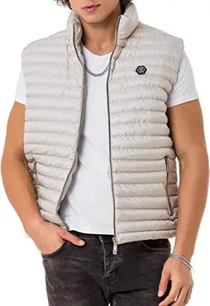 Herren Weste mit Stehkragen Big Bubble Zipper Jacke Collar Print Beige M