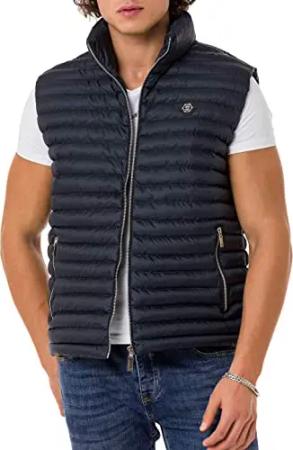 Herren Weste mit Stehkragen Big Bubble Zipper Collar Print Navyblau 3XL