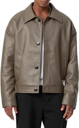 Hochwertiger Kunstleder Mantel Urbanstyle Kurzmantel Lederjacke Olivgrün XXL