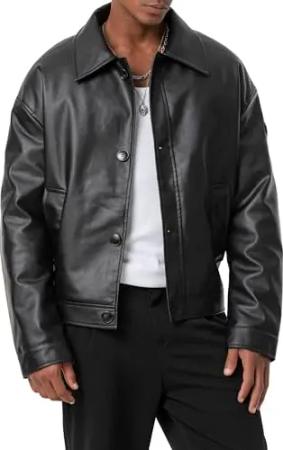 Lederjacke im Bomberjackenstil Kunstleder Oversized Schwarz S