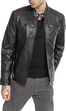 Lederjacke für Herren Bikerjacke Übergangsjacke Echtleder Vintage Schwarz L