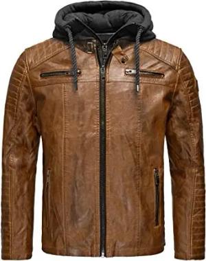 Robuste Lederjacke Kunstleder Bikerjacke mit abnehmbarer Kapuze Braun S