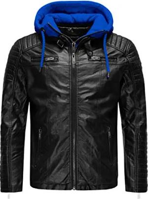 Robuste Lederjacke Kunstleder Bikerjacke mit abnehmbarer Kapuze Schwarz-Blau S