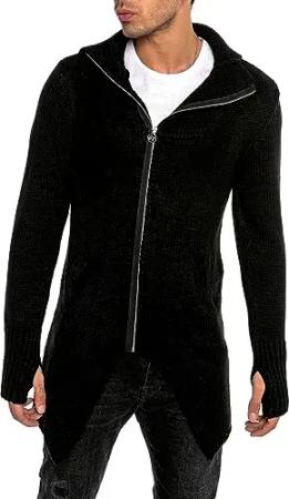 Strickjacke für Herren Cardigan mit Kapuze Hoodie Sweat-Jacke Asymetric Cut Schwarz M