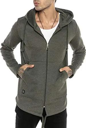 Sweatjacke für Herren Cardigan Kapuzenpullover Long Cut Oversize Anthrazit L