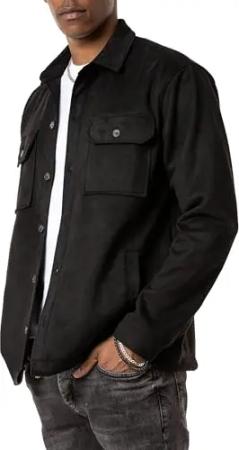 Vintage Hemd Wildlederlook Freizeithemd Langarm Schwarz L