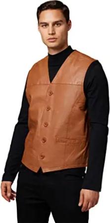 SK-Vest, Herren Leder-Weste aus echtem Lamm Nappa Leder (Schwarz, Braun, Cognac Braun) (Cognac Braun, S)