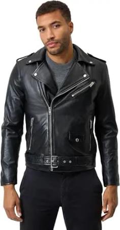 Herren Biker Lederjacke Marco mit Gürtel – Lamm Nappa Leder (DE/NL/SE/PL, Alphanumerisch, S, Regular, Regular, schwarz)