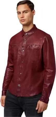 Herren Lederjacke Reverse Shirt - Leder Wende-Jacke (DE/NL/SE/PL, Alphanumerisch, S, Regular, Regular, Bordeaux)