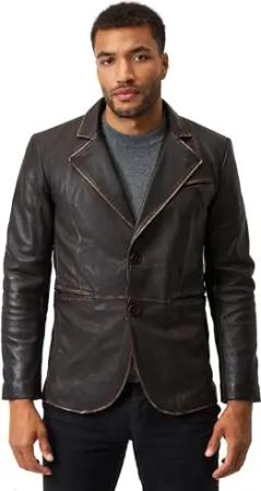 Herren Lederjacke Ricardo – Klassischer Leder Blazer im Vintage-Look aus Lamm Nappa Leder (DE/NL/SE/PL, Alphanumerisch, 3XL, Regular, Regular, braun)