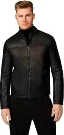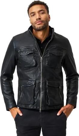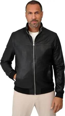 Herren Lederjacke Stefano – Elegante Lamm Nappa Jacke mit Stehkragen und Taschen, Schwarz (DE/NL/SE/PL, Alphanumerisch, L, Regular, Regular, schwarz)