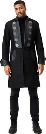 Herren Ledermantel Pirate Men – Hochwertiges Büffel Nubuk Leder in Schwarz mit Glattlederapplikationen (DE/NL/SE/PL, Alphanumerisch, XL, Regular, Regular, Schwarz)