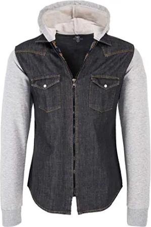 Herren Sweat-Jacke Jeanshemd mit Kapuze Denim Jeansjacke für Männer Slim-Fit Langarm Freizeit Hoodie Hemd Jacke H-232 Anthrazit L