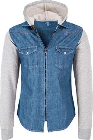 Herren Sweat-Jacke Jeanshemd mit Kapuze Denim Jeansjacke für Männer Slim-Fit Langarm Freizeit Hoodie Hemd Jacke H-232 Blau 3XL