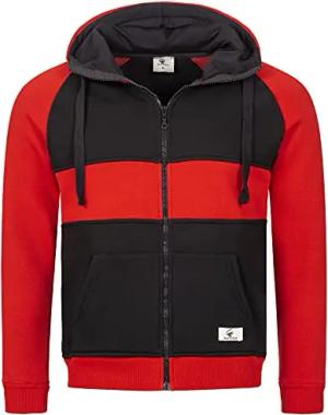 Herren Sweatjacke Hoodie Kapuzenjacke Kapuzenpullover Herren Reißverschluss Pullover Übergangsjacke Fleecejacke Herrenjacke H-278 Schwarz-Rot L