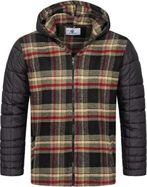 Herren Übergangsjacke Karierte Flanelljacke Gefüttert Holzfällerjacke Holzfällerhemd Kragen Steppjacke Kariert Thermojacke H-265 Rot S