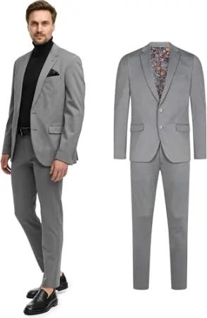 Herren JFEzra Set Anzug 2-teilig Sakko Hose Bundle | elastischer Herrenanzug Regular Fit für Männer Grey Mix, 46