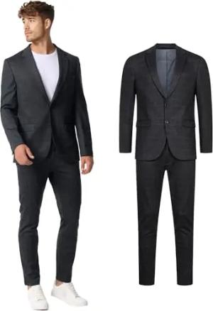 Herren JFOliver Set Anzug 2-teilig Sakko Hose Bundle | elastischer Herrenanzug Regular Fit für Männer Check, 46
