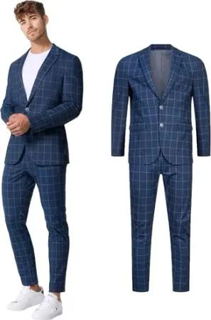 Herren JFOliver Set Anzug 2-teilig Sakko Hose Bundle | elastischer Herrenanzug Regular Fit für Männer Check, 56