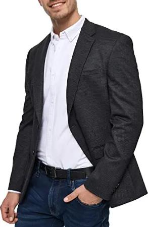 Herren JFFinn Sakko mit Super-Stretch | Anzugjacke Herrenjackett Herrenblazer Herringbone, 44