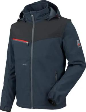 Softshelljacke Stretch X – hochwertige Arbeitsjacke für die KFZ- oder Sanitärbranche in der Größe S – wasserabweisend (8.000 mm WS) mit abnehmbaren Ärmeln & Kapuze – in blau