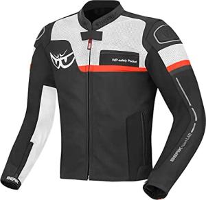 Wild Chase Motorrad Lederjacke, schwarz/weiß/rot, 48