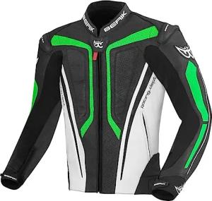 Street Pro Motorrad Lederjacke, schwarz/weiß/grün, 52