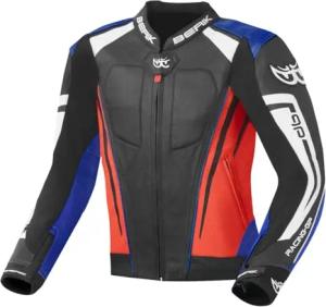 Street Pro Motorrad Lederjacke, schwarz/rot/blau, 54