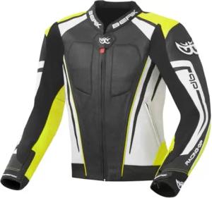 Zakura Motorrad Lederjacke, schwarz/weiß/gelb, 56