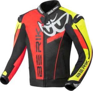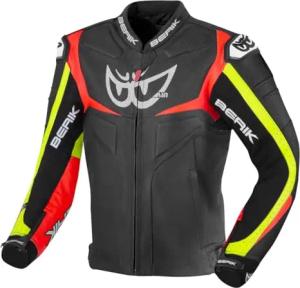 VisionGP Motorrad Lederjacke, schwarz/neon-gelb/neon-rot/weiß, 52