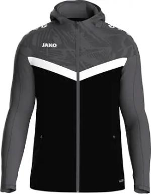 Kinder Freizeitjacke Challenge mit Kapuze, Schwarz-Meliert/Weiß, 140
