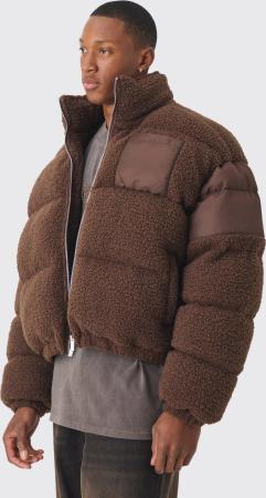 Regular Fit Pu Yoke Nylon Panel Puffer Jacket - Chocolate - L, Chocolate
