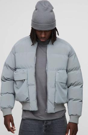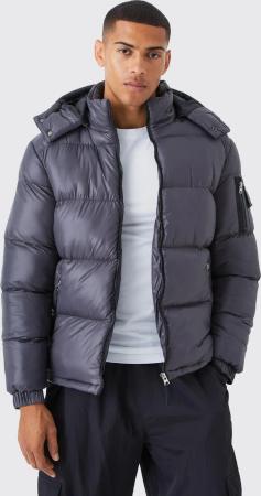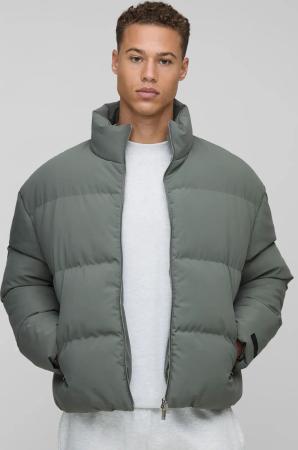 Tall Man Boxy Fit Funnel Neck Puffer Coat In Grey - M, Grey