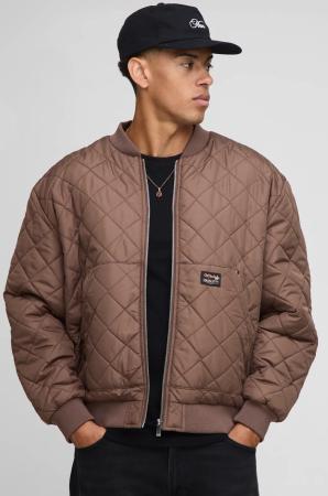 Oversized Diamond Quilted Liner Bomber Jacket - Chocolate - L, Chocolate