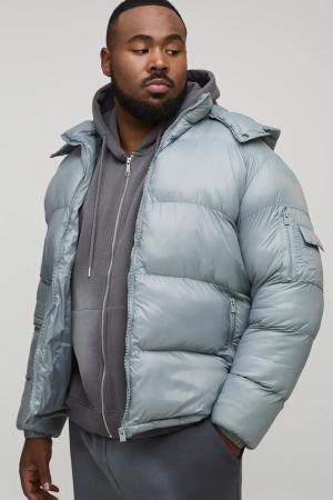 Plus High Shine Regular Fit Hooded Puffer In Grey - 2Xl, Grey