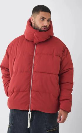 Plus Man Boxy Fit Funnel Neck Puffer Coat - Grey - 3Xl, Grey