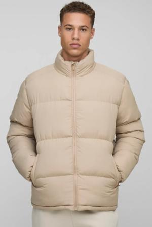 Tall Regular Fit Funnel Neck Puffer Jacket In Stone - M, Stone