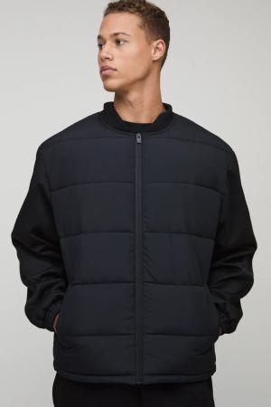 Tall Regular Fit Quilted Scuba Sleeve Puffer - Black - L, Black