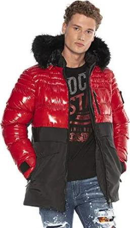 Herren Mantel CM166 Rot – Stylische Winterjacke im modernen Design mit warmem Innenfutter, abnehmbarer Kapuze und funktionalen Details für kalte Tage - CM166 Rot XL