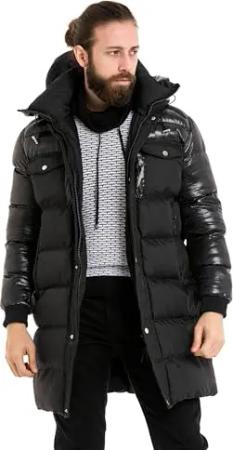 Herren Mantel CM219 Schwarz – Stylische Winterjacke im modernen Design mit warmem Innenfutter, abnehmbarer Kapuze und funktionalen Details für kalte Tage - CM219 Schwarz S