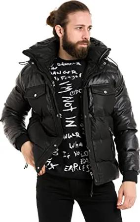 Herren Mantel CM218 Schwarz – Stylische Winterjacke im modernen Design mit warmem Innenfutter, abnehmbarer Kapuze und funktionalen Details für kalte Tage - CM218 Schwarz XL