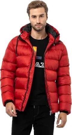 Herren Steppjacke Jacke Winterjacke Kapuze Reißverschluss CJ268 Rot S