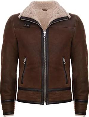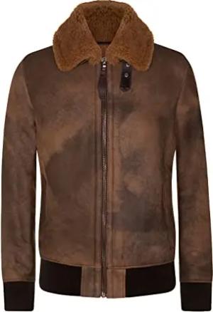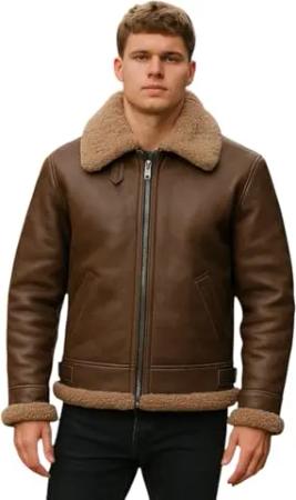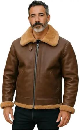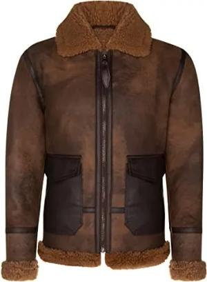 Braune B3 Schaffelljacke Für Herren aus Dem 2. Weltkrieg Shearling Flieger Pilot Fliegend Luftwaffe
