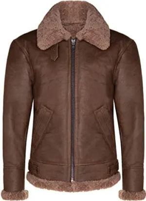 Herren Brauner B3 WW2 Schaffell Leder Flieger Pilot Bomber Jacke