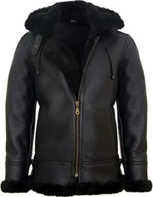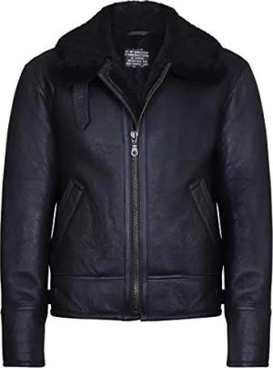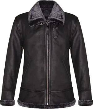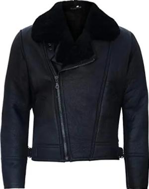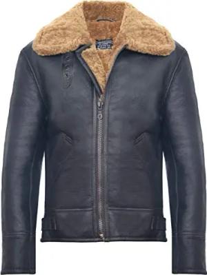 Herren Bikerjacke aus Echtem Schafsleder in Schwarz Shearling Flieger B3 RAF