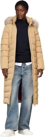 Damen Daunenmantel Heritage Tyra Maxi With Fur mit Kapuze, Grün (Classic Khaki), XXS