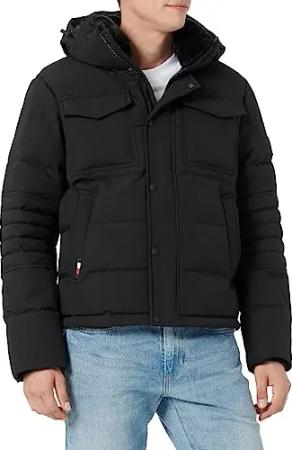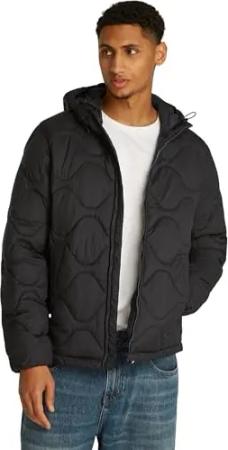 Herren Steppjacke mit Kapuze, Schwarz (Black), S